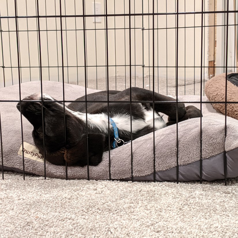 Dog watches movie, falls asleep.