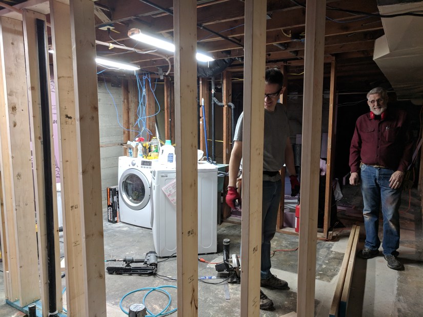 We were in danger of having the plumber show up only to find there were no walls for him to put plumbing in. Luckily, Justin’s dad came out for most of a week and put up about a million walls. Whew!