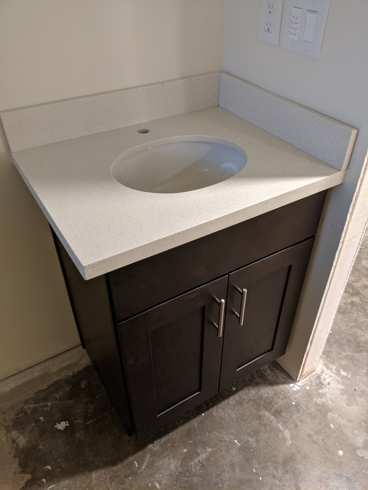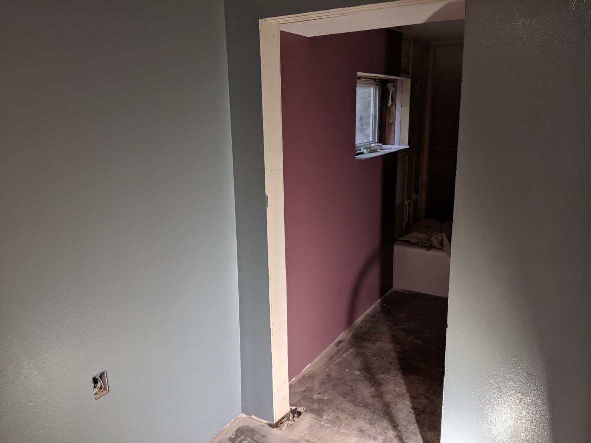 After trying out approximately half the colors in the store this is what we settled on for the downstairs bedroom and attached bath: