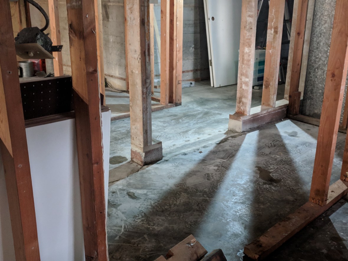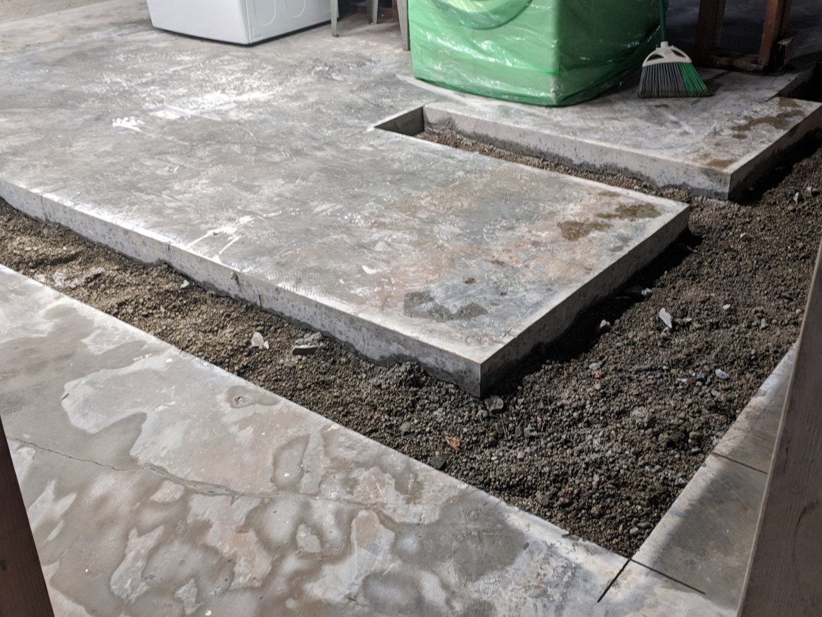 The hose got clogged with fall leaves, so water started gushing out right next to the house, causing a water leak in the basement. So it was a good time to just replace the whole stupid hose setup with actual pipes into the storm drain system. It took two guys all day to bust up the concrete and dig up the yard, and now you can barely tell they did it. Yay!