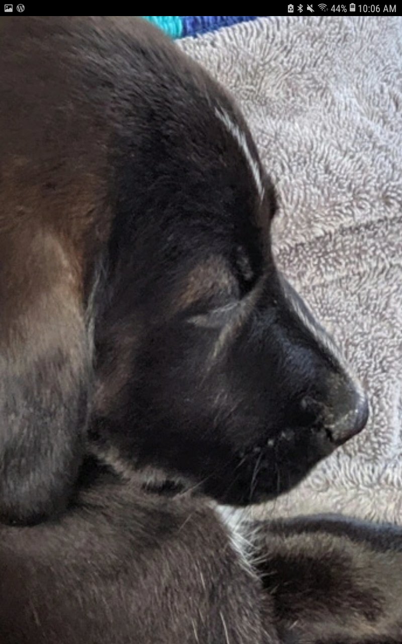The littlest, furriest, and darkest in fur of our family just fell asleep…