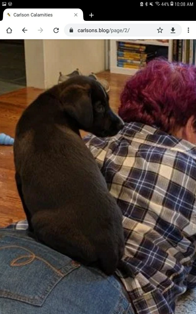 Socialization work continues. He’s doing well overall, but is still quite reticent about meeting new people.